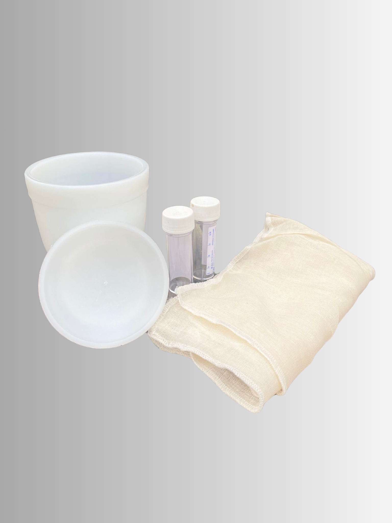 In de set zit alles wat je nodig hebt om thuis kleine kazen te maken. De materialen sluiten aan bij onze manier van werken tijdens de workshop, zodat je thuis op dezelfde manier verder kunt.